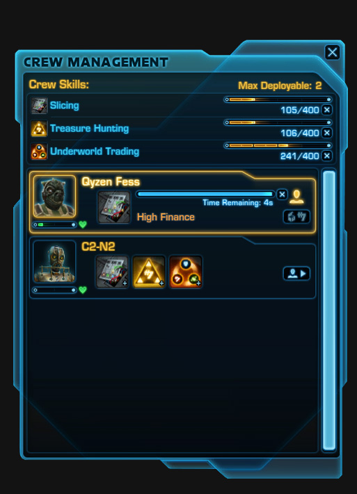 Autorizações para Crew Skills podem ser compradas com Cartel Coins ou no Galactic Trade Network.